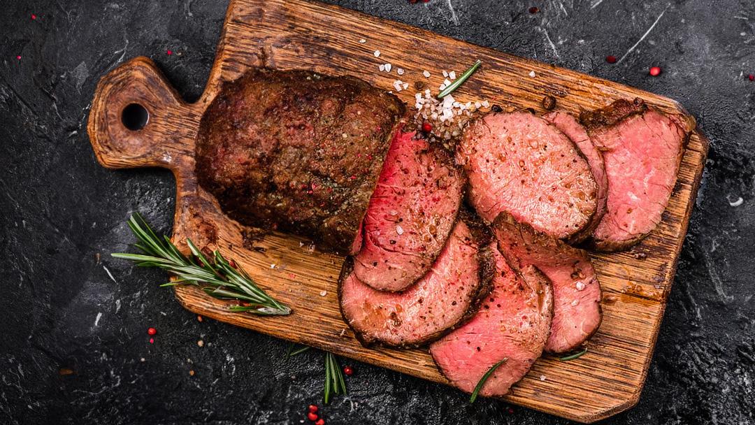 5. Helyezd a bélszínt egy vágódeszkára, lazán takard le fóliával, és hagyd pihenni 20 percig, mielőtt felszeleteled.