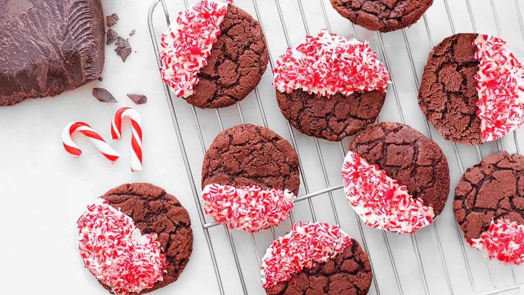 Ezek a puha, csokoládés, mentás ízvilágú kekszek fehércsokoládé mázzal vannak megkoronázva, így tökéletes desszertet kínálnak vacsora után. A kakaópor és a borsmenta kivonat természetes ízei garantálják az ünnepi ízkombinációt, anélkül hogy kompromisszumot kellene kötni. A máz tetejére szórt tört borsmenta cukorka gyönyörű megjelenést kölcsönöz a kekszeknek.