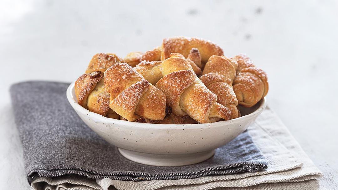 A rugelach egy hagyományos sütemény, amely Lengyelországból származik, és rendkívül népszerű Izraelben. Ebben a receptben a vajas, omlós tésztát házilag készítjük, és melegítő sárgabarackos, barna cukros, fahéjas töltelékkel tekerjük fel. A forrólevegős sütő mindössze 25 perc alatt gyorsan megsüti ezeket a nagyszerű süteményeket, így ideális előre elkészíteni egy nagyobb adagot karácsony idejére.